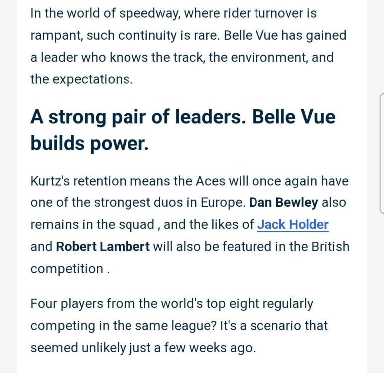 Being realistic. We'd have no chance of winning the League with Brennan @ No.1 and it's crucial to get regular Home wins just to keep fans somewhat satisfied so we'd need a 1-5 full of gaters with proven pedigree around Foxhall in order to do that. Riders like Klindt and Lawson tick both of those boxes.
