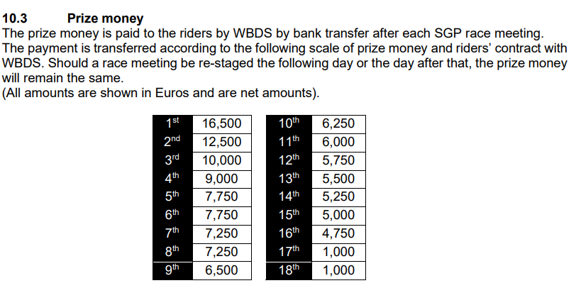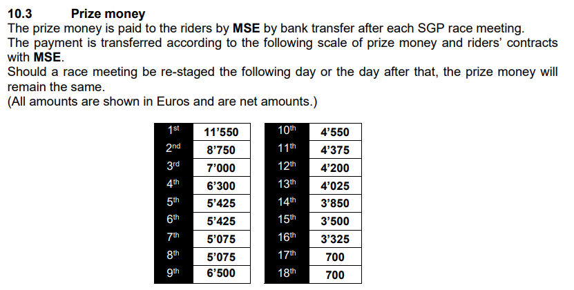 How much will the gp boys be getting from prize money this year ? I got the impression it was never massive money and the main plus to being in the gp was it helped get better personal sponsors, I never remember it being a major earner other than when Andreas Jonson won that race that was worth was it $100,000 dollars ?