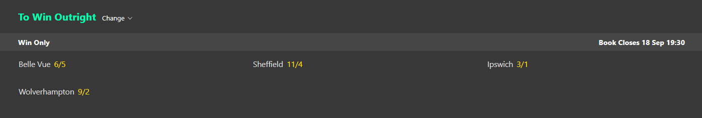 TTT Posted September 11, 2023 Report Share Posted September 11, 2023 1 hour ago, orion said: I see that Sheff have got Fricke into replace Woffy tonight..So with Leics out the play offs a good option for them in the play offs..Ippo not the worst value now that Belle Vue are with out Wright I've gone with the value @ 6's on Ipswich, I just think if Rew can hit some form then Ipswich should go on to lift the title because Emil and Doyle will always keep them in meetings, Rew can replace Hume and Riss too which is an advantage. BV with a full 1-7 would've been clear favourites but I wouldn't be touching them with a 6 man team @ 10/11 because you need all team members firing plus you need a bit of luck as well to remain injury free otherwise they'll be down to 5 riders so I've got to look for value, Wolves are struggling to win a meeting inside 15 Hts at Home so they're a no go for me as I think they'll lose the away league to any side and I think Sheffield's tail end of the team is on par with Ipswich's now yet they're a much shorter price @ 11/4 Quote Link to comment Share on other sites More sharing options...