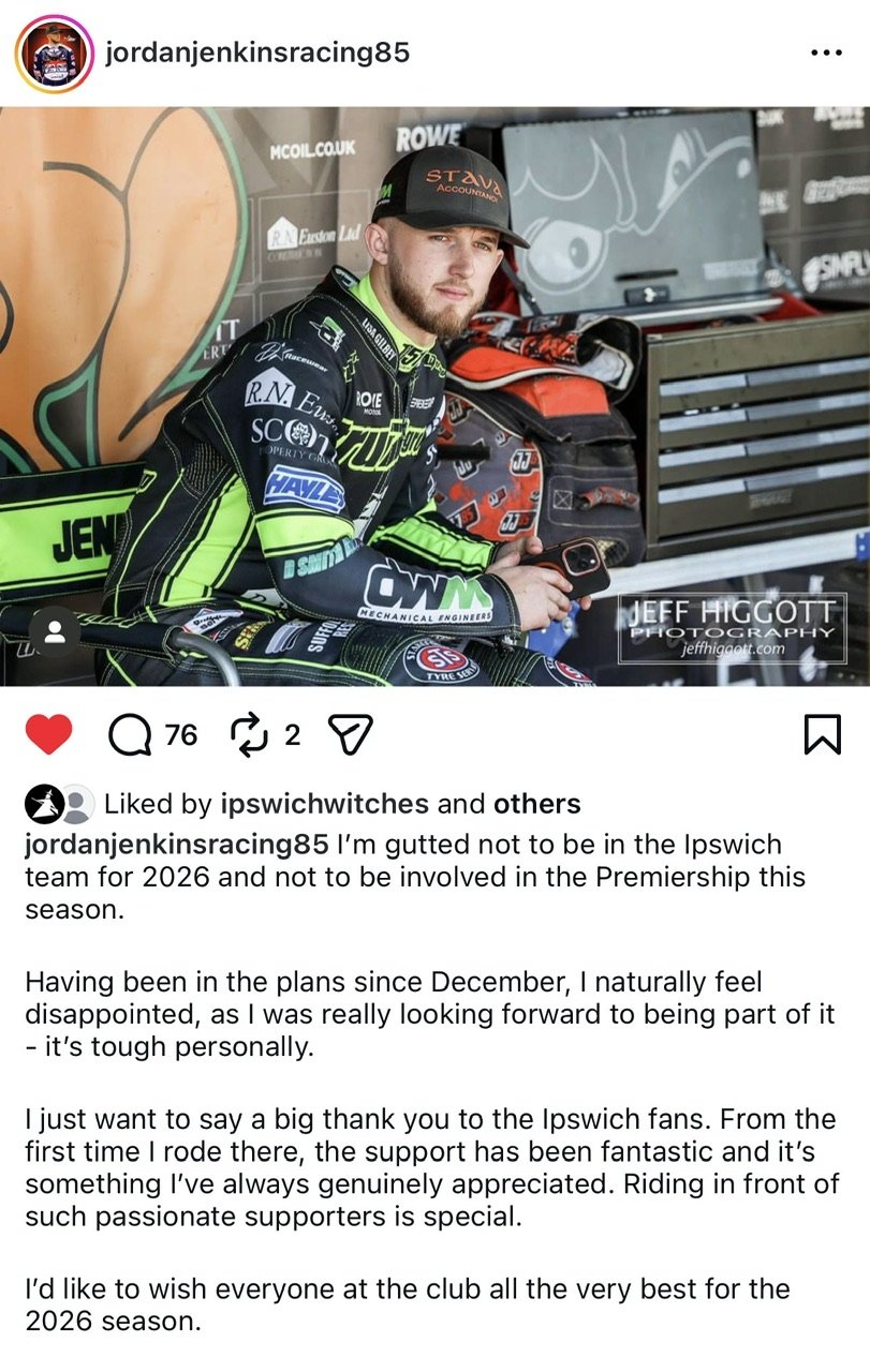 Steve Irving Posted 23 minutes ago Report Share Posted 23 minutes ago 7 minutes ago, ShanoXtra said: Apologies, he was in the plans SINCE December. He sounded gutted, is rather have a bit of loyalty and chose him over any news riders, especially to then come out and say they basically don’t care about this season and gave Scotty a sent off season. Do the right thing and put Jenkins in, speedway is failing in a lot of ways for me. Was he? “I spoke briefly with their new promotion, but it seems a change in the rules has put a stop to me having a low enough average for them to fit me in” This weeks Speedway Star. Doesn’t sound to me like they’ve promised him anything? And that’s also only his version of events. There’s always two sides to a story. Quote Link to comment Share on other sites More sharing options...
