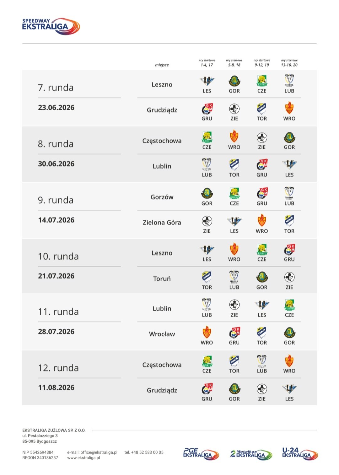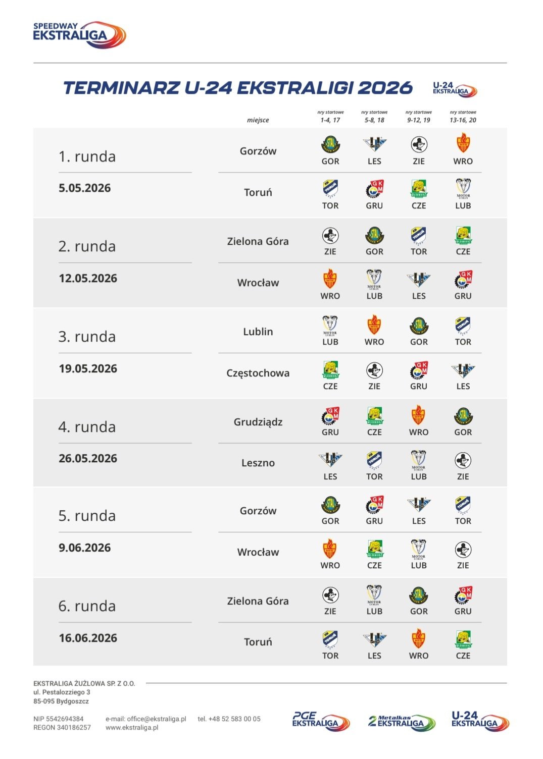 stewmac Posted 41 minutes ago Report Share Posted 41 minutes ago Sportowefakty details about the league, translation here: Starting in the 2026 season, the U24 Ekstraliga will adopt a four-legged system. This means that all matches will feature one home team and three visiting teams. Each team will host three such matches. There will be a total of 12 rounds. There will be no semifinals or finals. Three points are awarded for a win in each of the four matches. Subsequent places receive two, one, and zero points, respectively. In the event of a tie in points, the final standings will be determined by the number of heat points, followed by first, second, third, and fourth places in all rounds. Teams will consist of four riders under 24 years of age and one optional reserve. There will be no limits on the number of foreign or domestic riders. However, there will still be a maximum average points limit of 1.4 (or a different conversion rate in the case of average points from lower-level competitions – editor's note). The competition will consist of 18 races. Two riders from each team will line up in each heat. Ultimately, two riders will complete five heats, while the remaining two will complete four. Regular reserves will be allowed at the touch of the heat, but tactical reserves, rider substitutions, or grid swaps will not be permitted. Each four-event heat can be completed after 12 heats. The U24 Ekstraliga season begins on May 5th. The first hosts will be Perłowa Przystań Stal Gorzów and AVO KS Toruń . In the Lubusz Voivodeship, Polcopper Agromix Unia Leszno , Falubaz Zielona Góra , and U24 Beckhoff Sparta Wrocław will also compete. In the Kuyavian-Pomeranian Voivodeship, Grudziądzkie Mebelki GKM Grudziądz , Impakt Włókniarz Częstochowa , and Motor Lublin will appear . Quote Link to comment Share on other sites More sharing options...